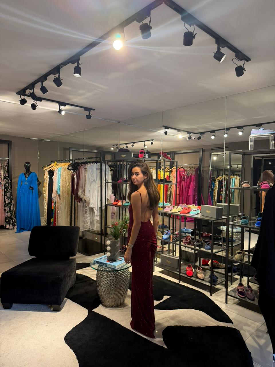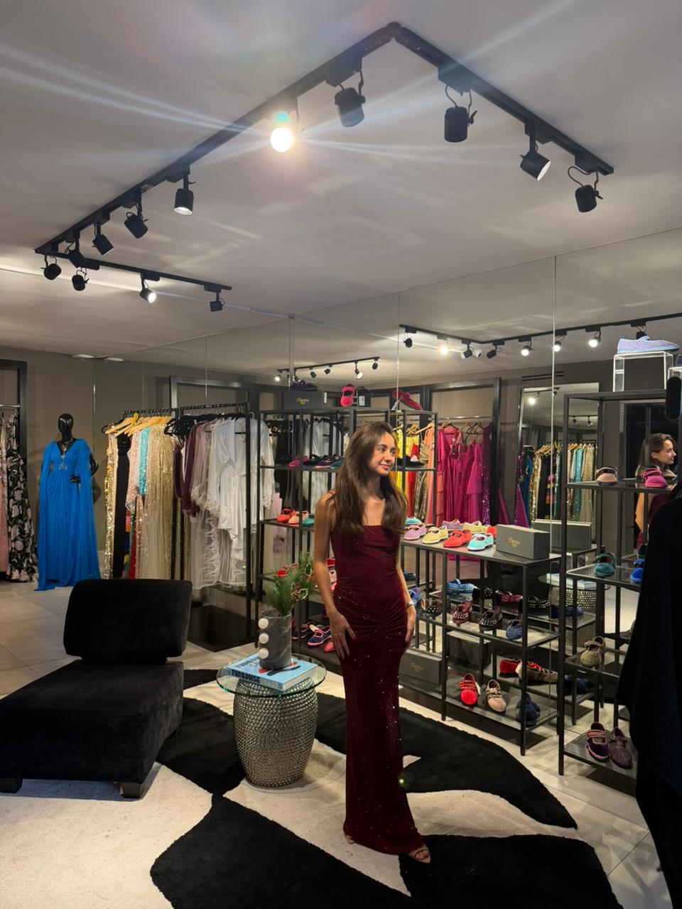 Tela algo pesada por la cantidad de brillos, ligeramente strech.