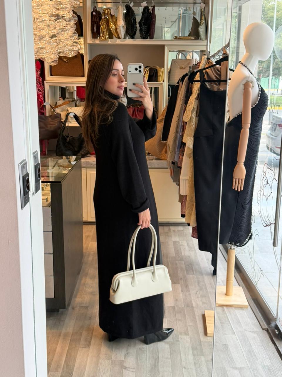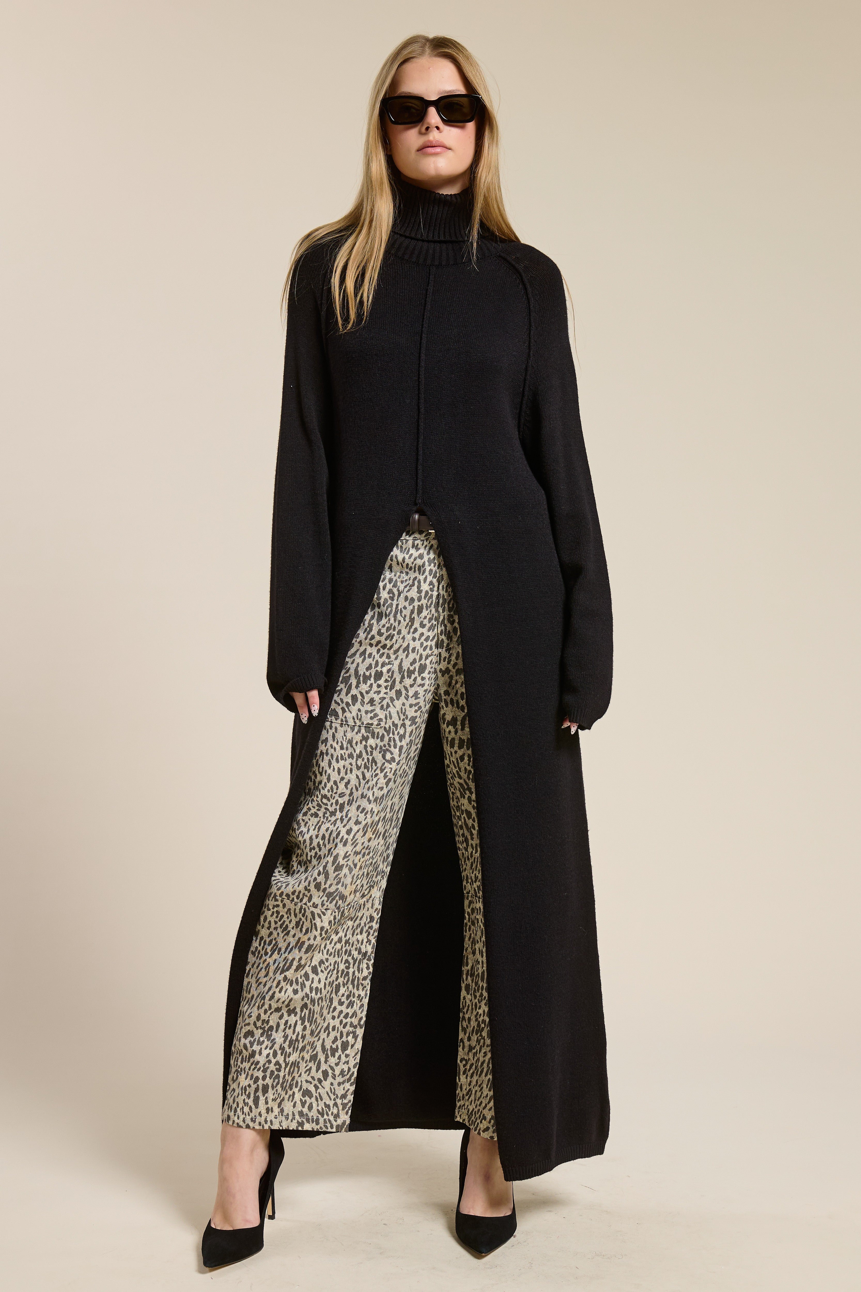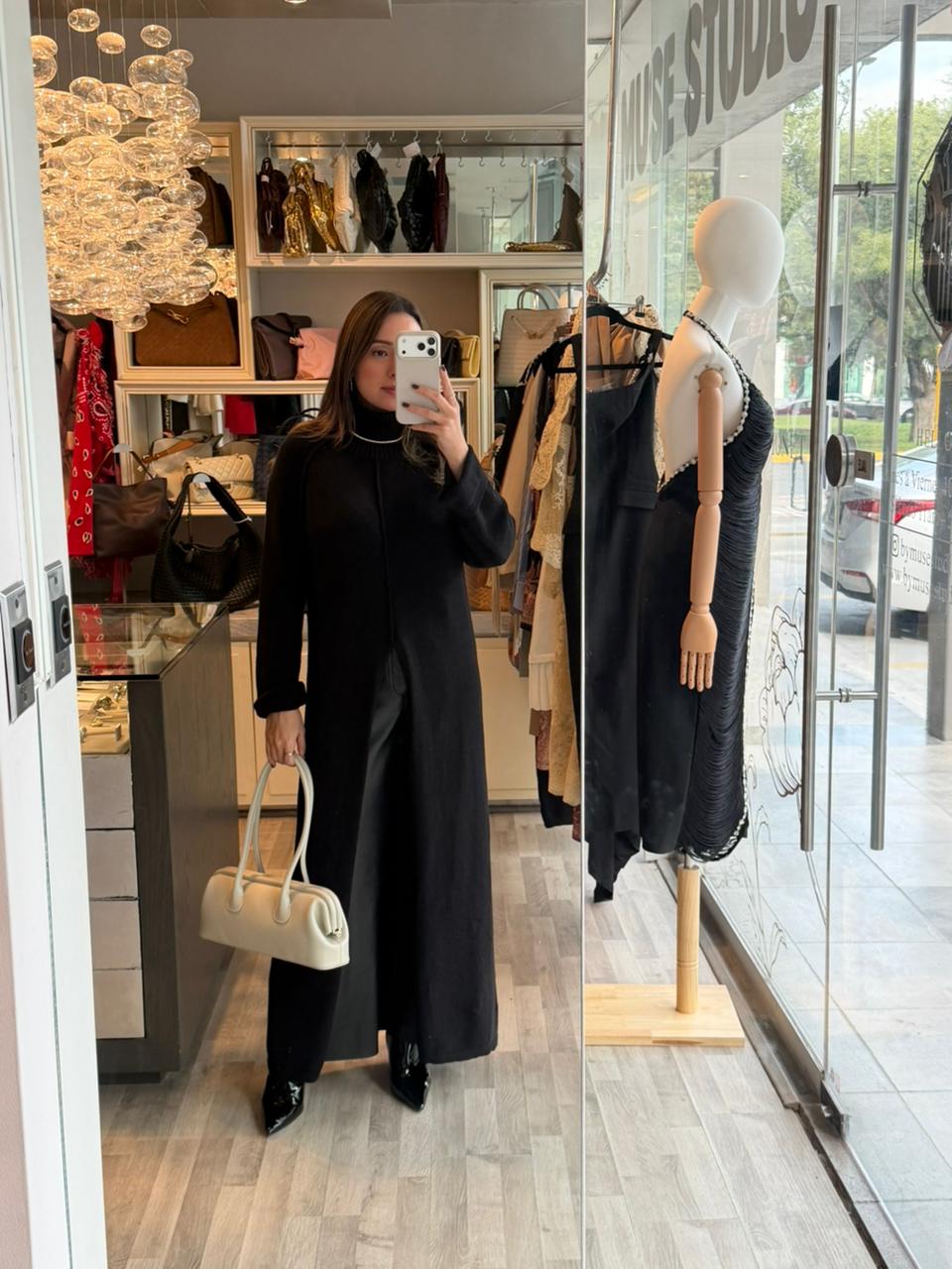 Tela de punto delgada, cuello de tortuga sin apretar de mas.