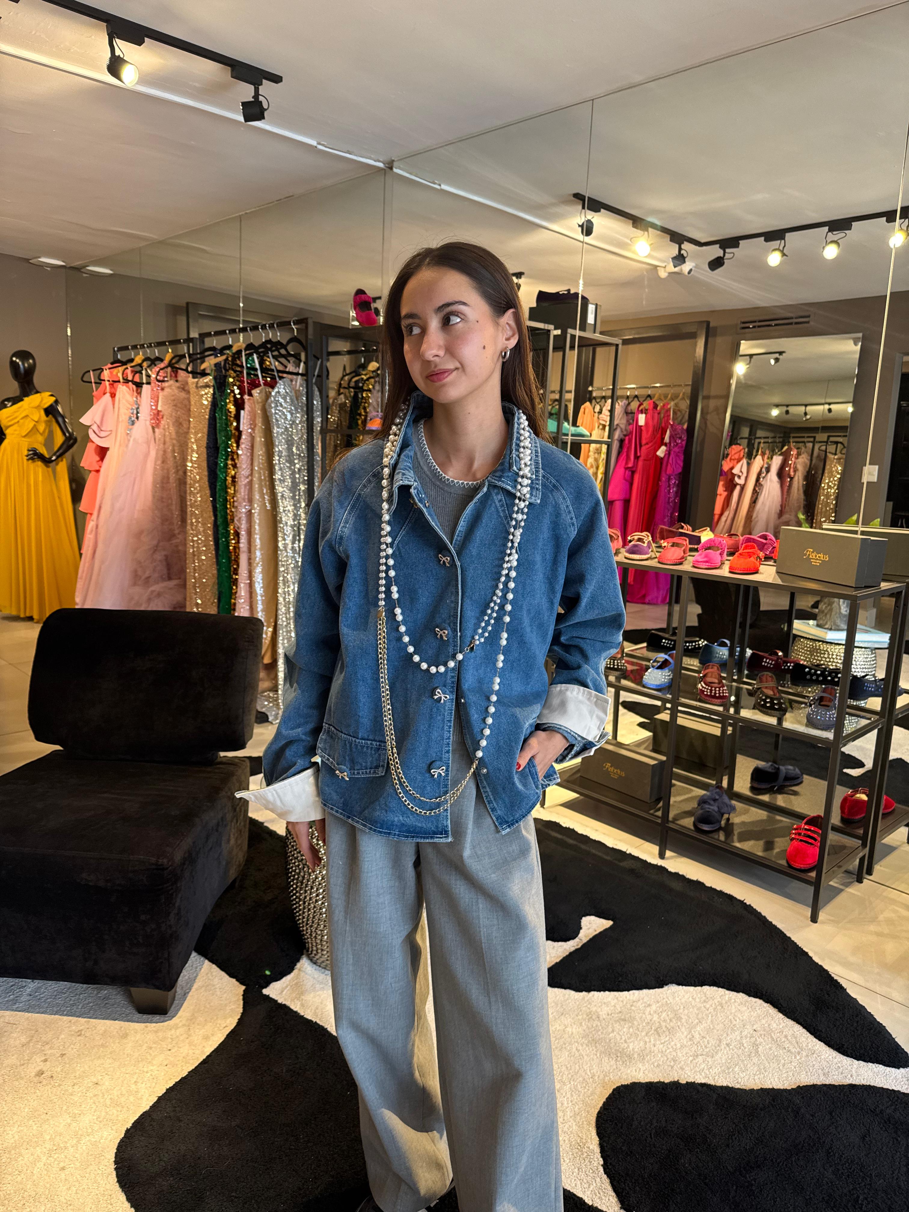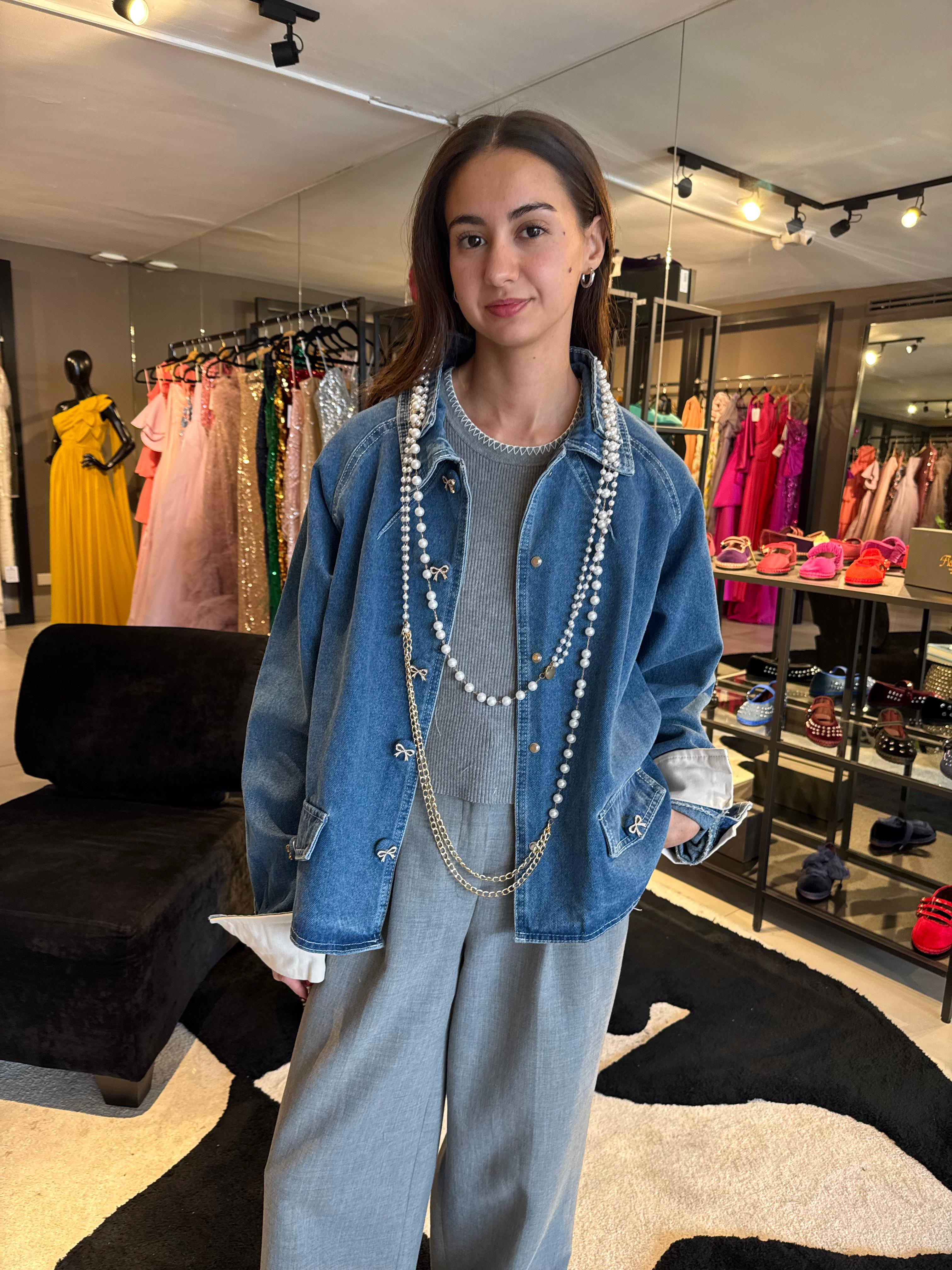El collar de perlas es removible se abrocha con botones. Incluye collar de perlas.